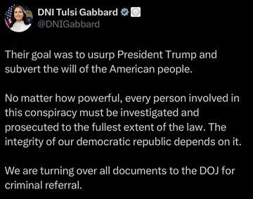 Obama and his apparatchiks have been caught “subverting the will of the American people and undermining our democratic republic," says DNI Gabbert.